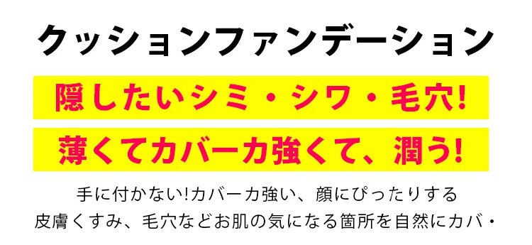 【クッションファンデーション】カバー力が高い、しっとり、伸びやすい、透明感アップ、ツヤ肌